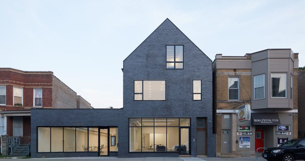 Interior and exterior renovation of a three-story mixed-use building. The ground floor was converted from retail to a photography studio, while the upper floors remained residential. The scope included full interior reconfiguration, systems upgrades, and a complete teardown and rebuild of the front masonry elevation. I was involved with all phases of the project, including surveying existing conditions, design, construction documentation, and overseeing construction (site visits and field reports). Project completed while at Bugaj Architects in an architect-led design-build project delivery method. Photos by North Logan Studio.